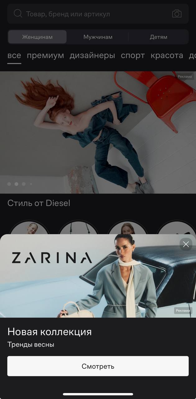 Push-уведомления о новинках и трендах.
